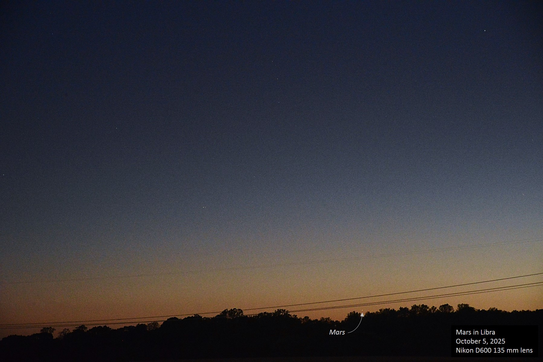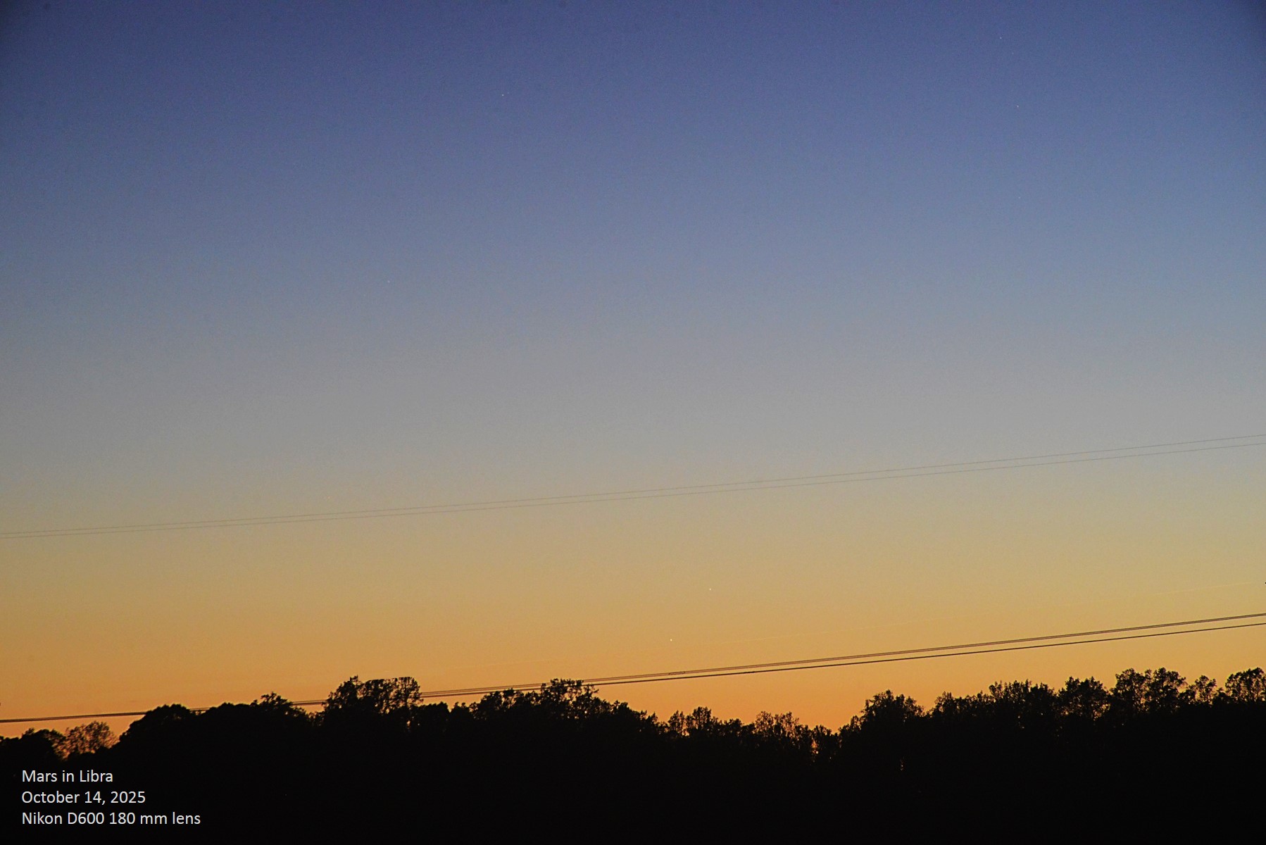 Mars and Zubenelgenubi are in conjunction this evening, but we had to zoom in with a fairly
