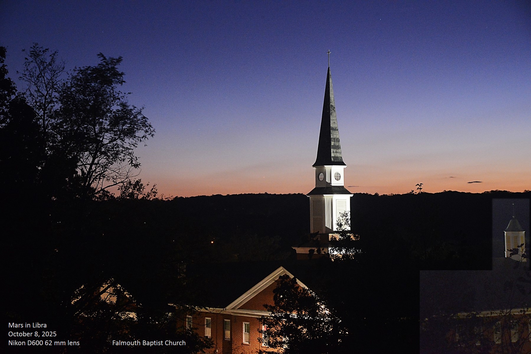 favorite spot, the upper parking lot at the Falmouth Baptist Church ~ unfortunately, the spire wasn't