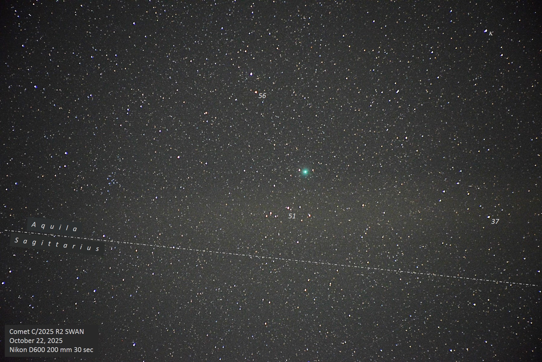 some pictures of one of the comets now visible in the evening, this one being C/2025 R2 (SWAN)