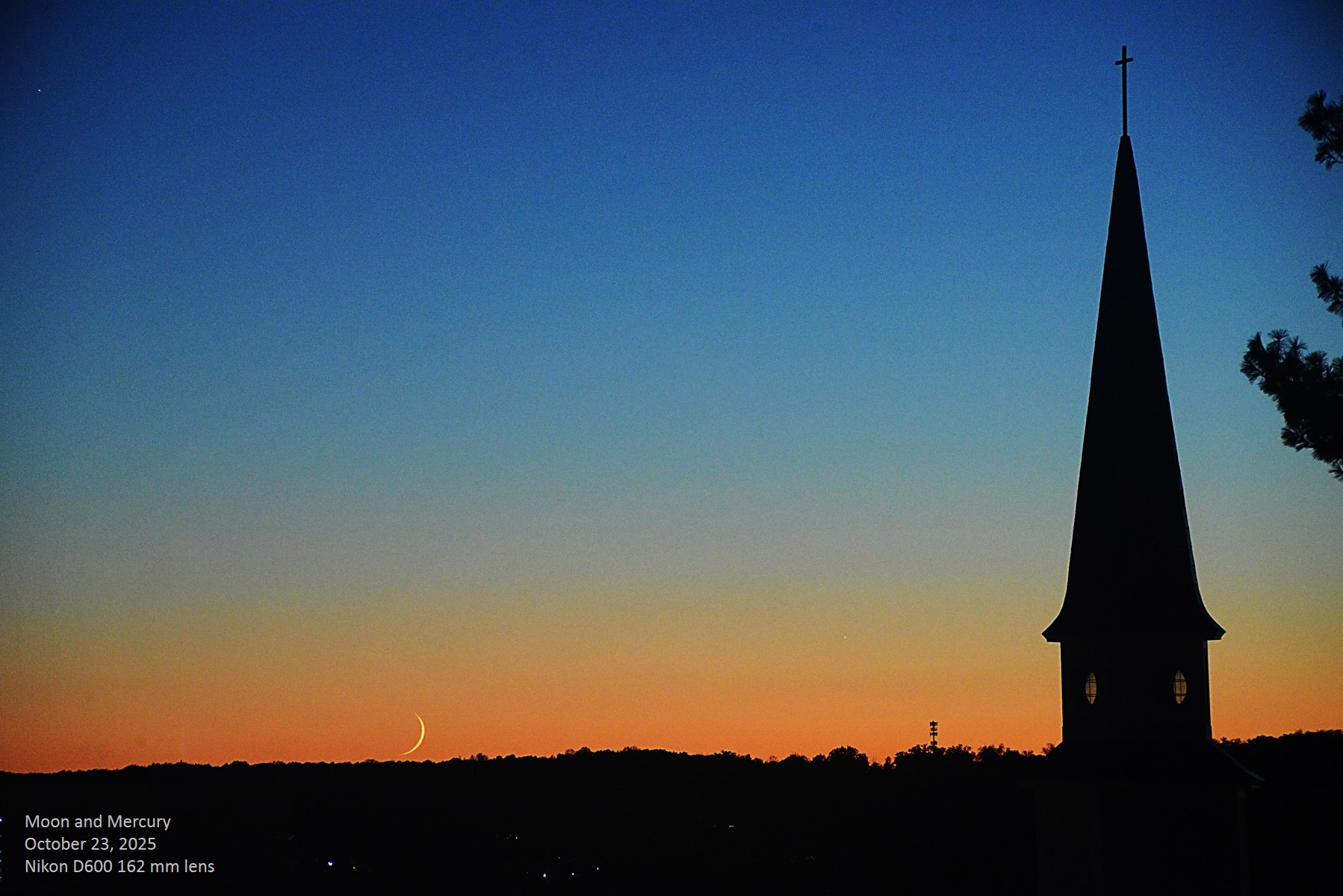 The crescent Moon, Mercury, and Mars gathered for a nice line-up this evening, viewed from my new