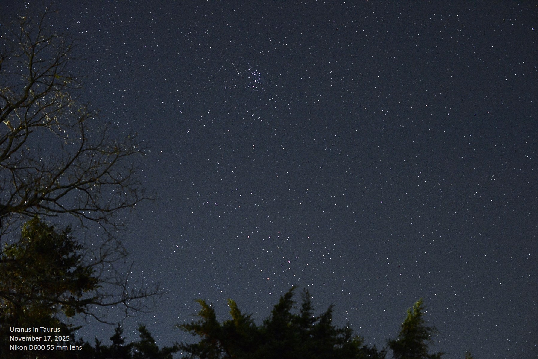 evening; here we see the Bringer of Jolity just below the ecliptic to the lower right of M45,