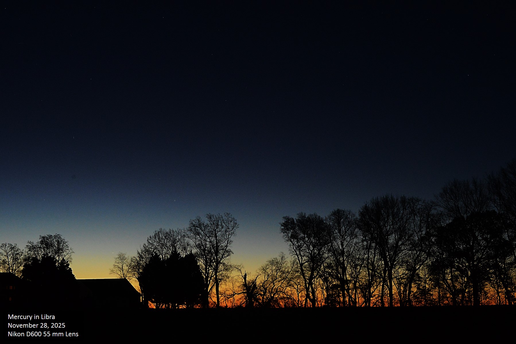 in the morning sky about an hour and a half before sunrise. Mercury is just beginning an