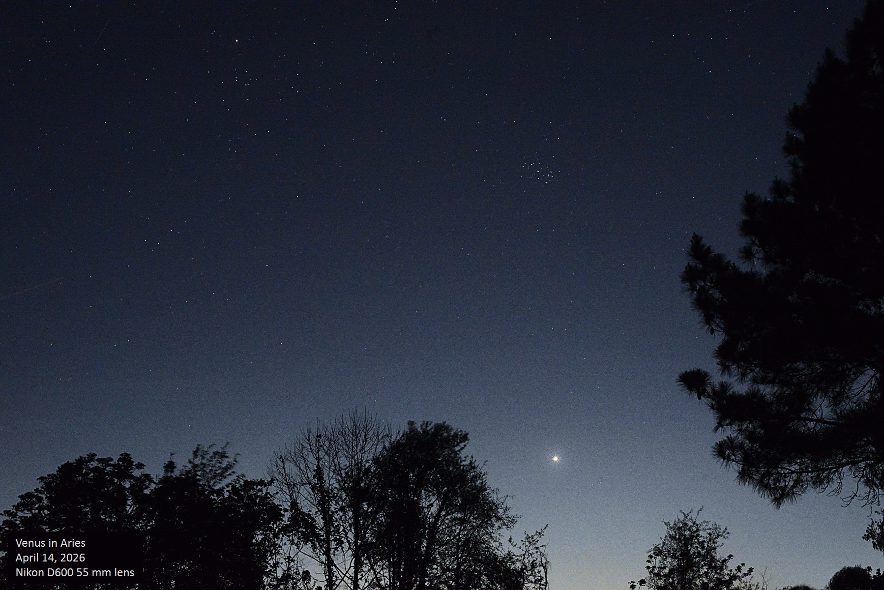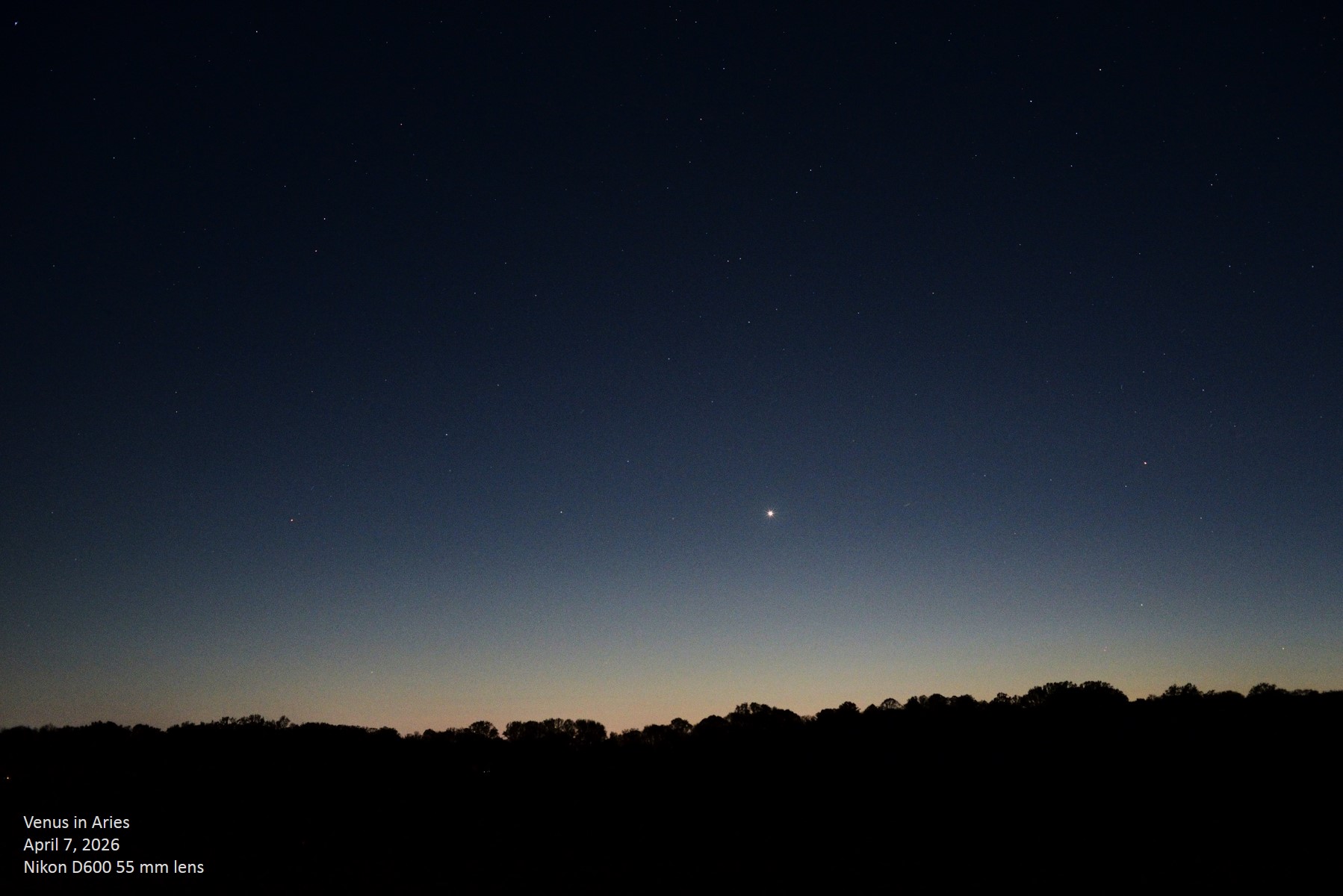 Venus is finally now visible in a dark sky just before it sets, and is positioned