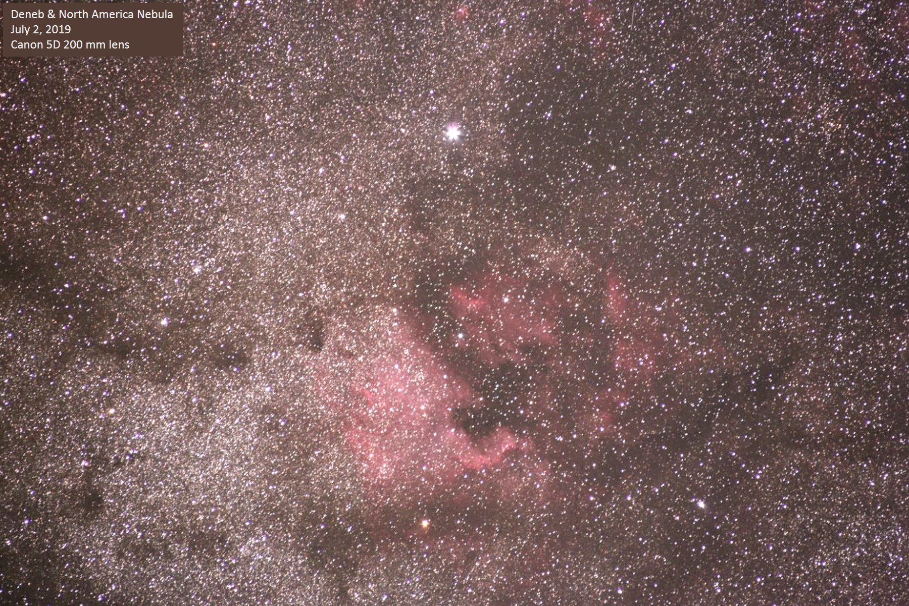 North America and Pelican nebulas along with the many dark dust clouds and lanes