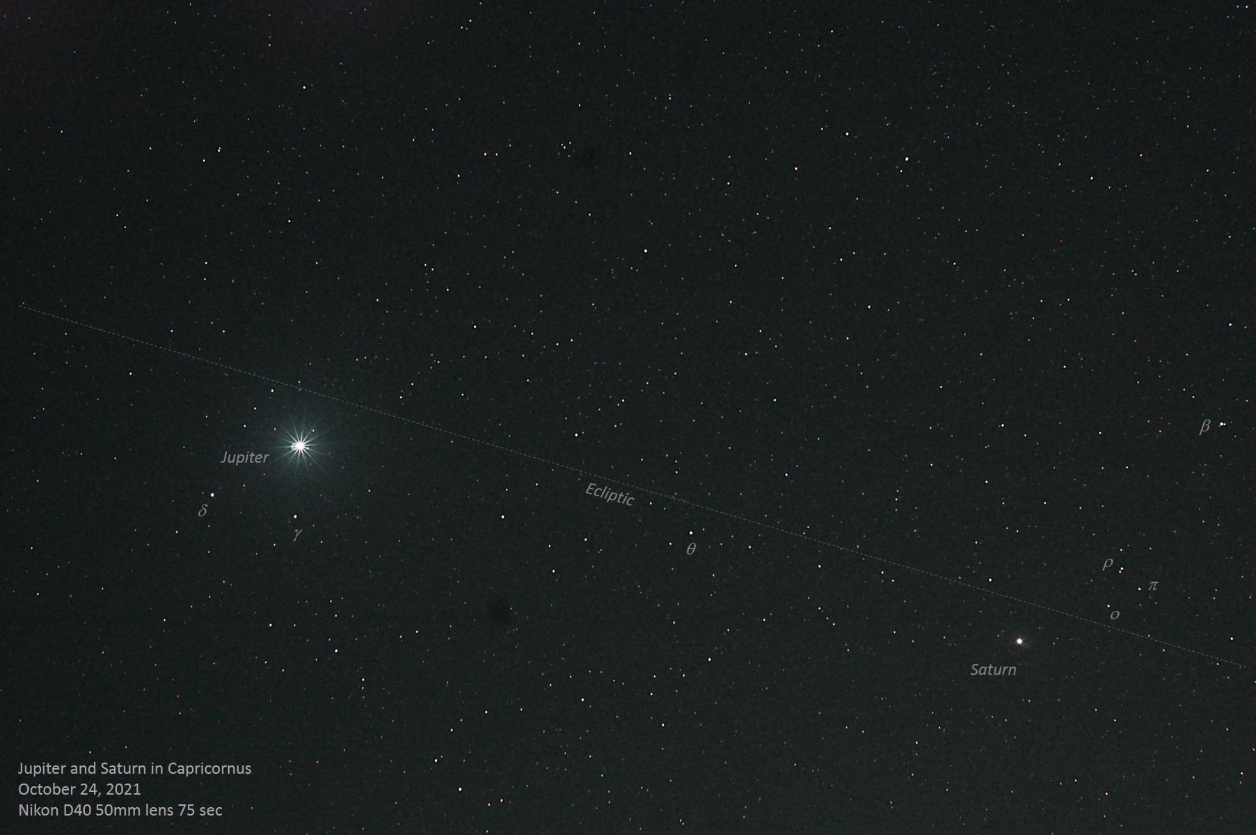 is still positioned just above δ and γ Capricorni, while