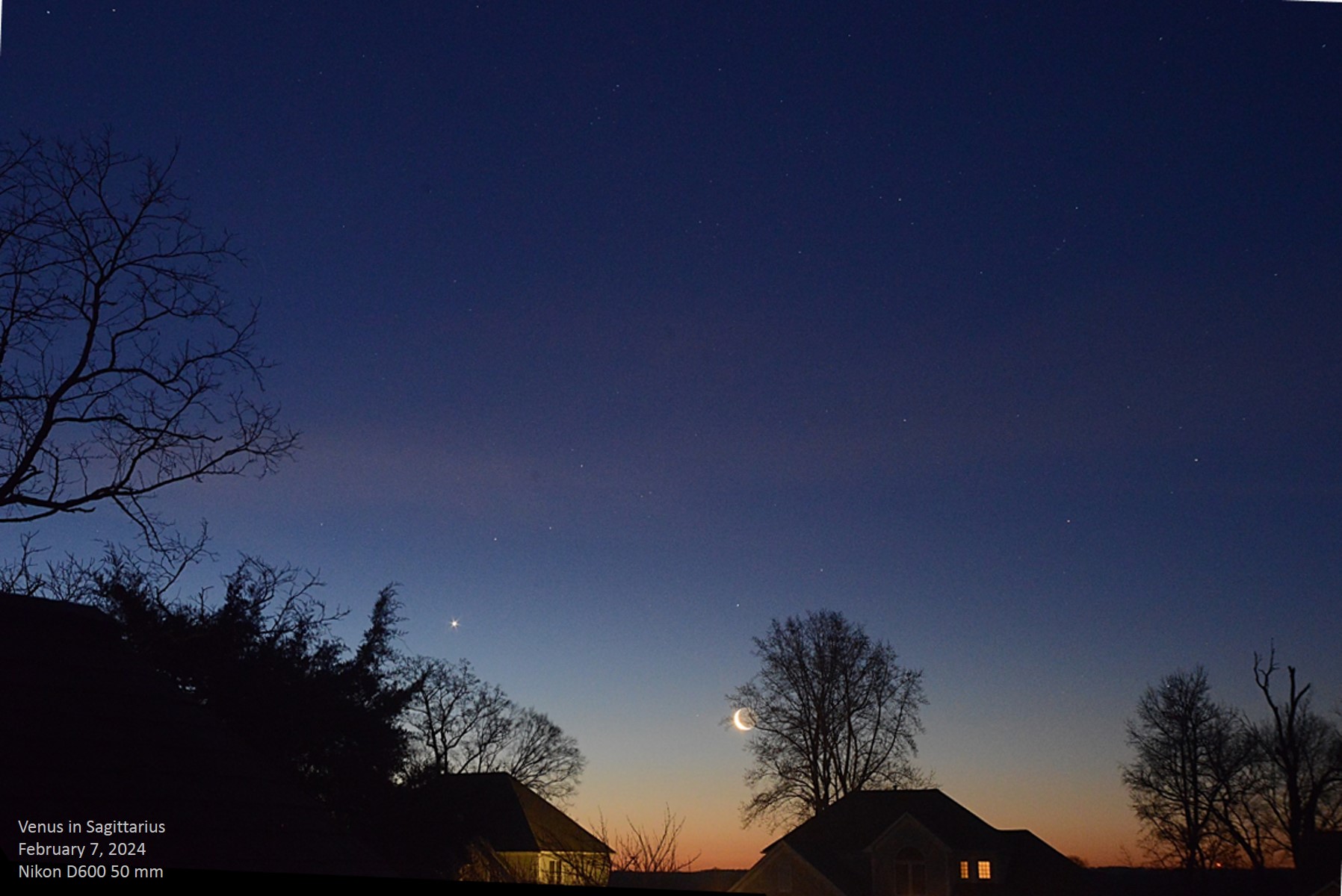 horizon. The stars of Sagittarius skim the treetops and rooftops looking out