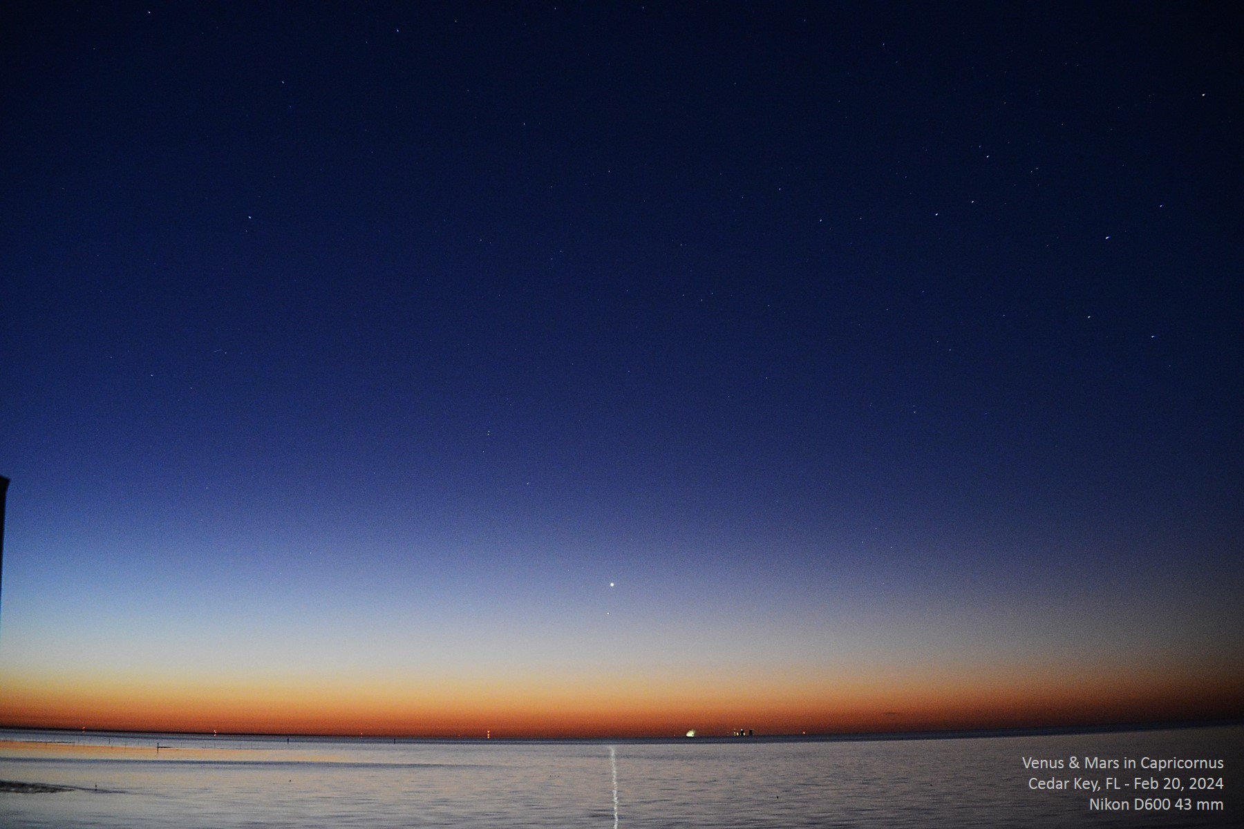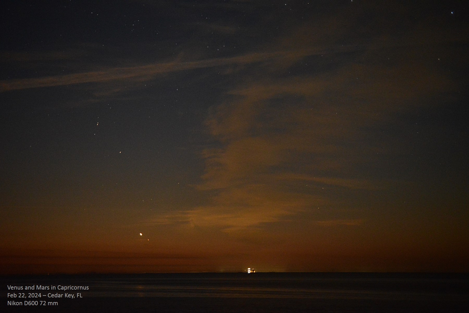 From Cedar Key, Florida, we were able to see the two planets Venus and Mars approaching