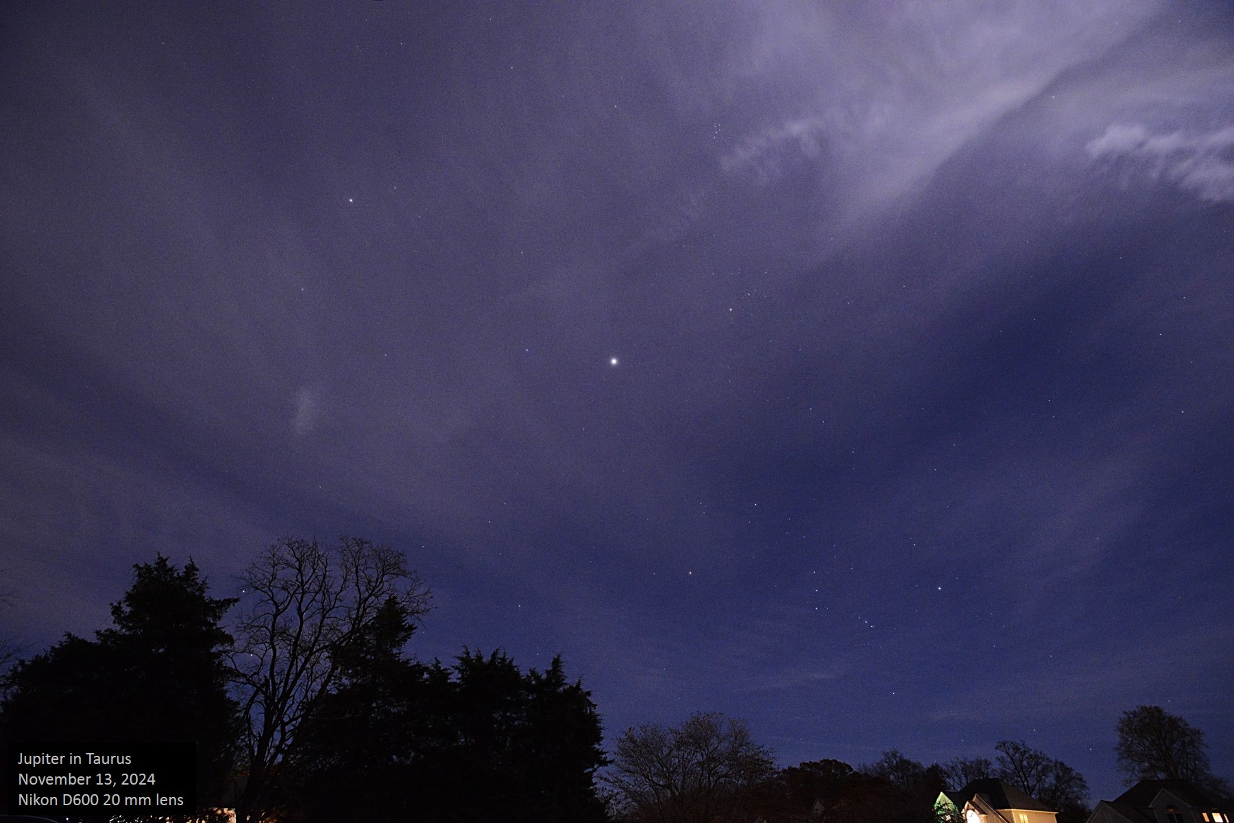 winter constellations rose in the east, headlined by brilliant Jupiter.