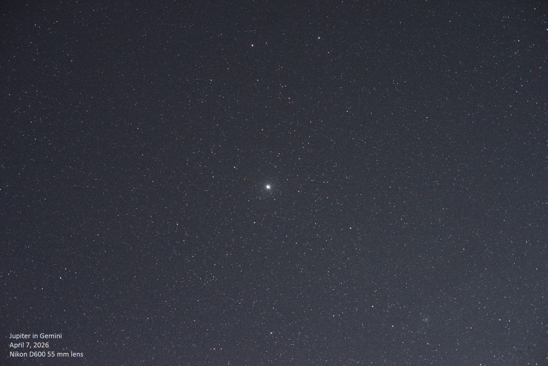 about half-way along its path through Aries. Jupiter remains in central Gemini